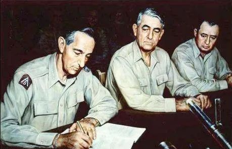 正在停战协议上签字的联军司令克拉克