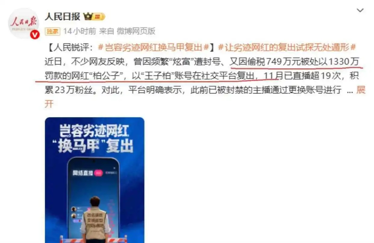 一个因炫富拜金、偷税漏税而被官方媒体点名批评、被平台永久封禁的人,怎么就能像没事人一样,改个名字、换个造型,就轻松“秽土转生”了?