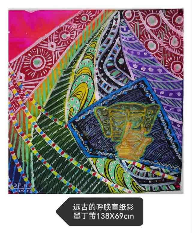 在视觉元素的构建上,丁芾的抽象彩墨画展现出深厚的文化自觉。她大胆地将闻名世界的三星堆文物元素融入抽象构图之中,这一举措极具智慧与胆识。三星堆文明的神秘、古拙与超现实感,与现代抽象艺术追求的精神性不谋而合。她并非简单地挪用文物形象,而是提炼其神韵,将其转化为抽象的符号与意象,穿插于点、线、面的交响之中。这种处理方式,使得作品在形式上的现代感与内容上的历史感达到了高度统一。观者在欣赏这些作品时,既能感受到抽象形式带来的视觉震撼,又能隐约触摸到中华文明古老而神秘的脉搏。这种“古为今用”的创造性转化,使得她的抽象画作不仅具有形式美,更具有了深厚的文化厚度与历史纵深感,这是其作品能够屹立于世界艺术之林并获得国际大奖的关键所在。