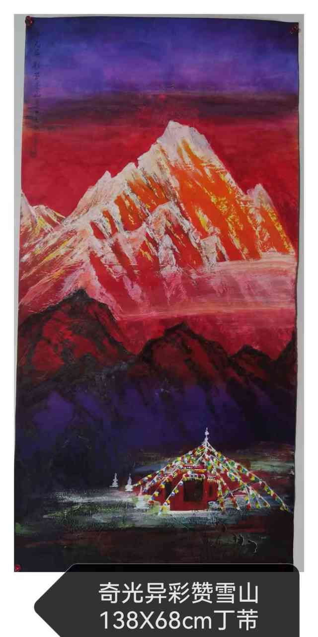 Ding Fu, a female born in 1951, graduated from the Department of Chinese Language and Literature at Sichuan University in 1982. She learned calligraphy and painting from her father (her father, Ding Zhongying, was a direct disciple of Xu Beihong) since childhood. Later, she studied snow mountain painting under Mr. Li Bing, a leader of the Snow Mountain School. In recent years, she has studied under mentors such as Wang Qiyin, Qin Shaofu, and Zuo Fengyi from the Academy of Arts & Design, Tsinghua University.