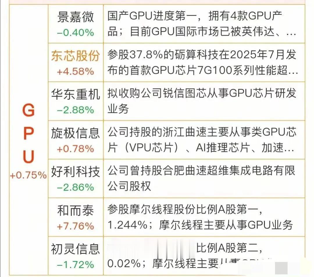二、CPU/GPU国产化:生态构建是关键国产芯片自主可控进程提速!CPU领域形成三强格局:中国长城依托ARM架构与华为合作生态领先;海光信息凭借x86兼容性占据优势;龙芯中科全自主指令集可控性最强。GPU赛道同样火热:景嘉微手握多款自研产品领跑;东芯股份参股企业预算科技新品性能亮眼;多家企业通过投资布局,如和而泰重仓GPU企业摩尔线程。配套环节如卓易信息的固件适配、澜起科技的PCIe芯片亦不可或缺。
