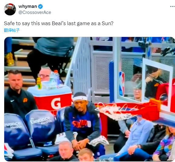 Sidery还发推写道:本赛季,当比尔不在场时,太阳队净效率为+3.3排在联盟第9位,当比尔在场时,太阳净效率为-9.3,排在联盟第28位;很明显比尔不适合菲尼克斯,但他的交易价值已经下架了。