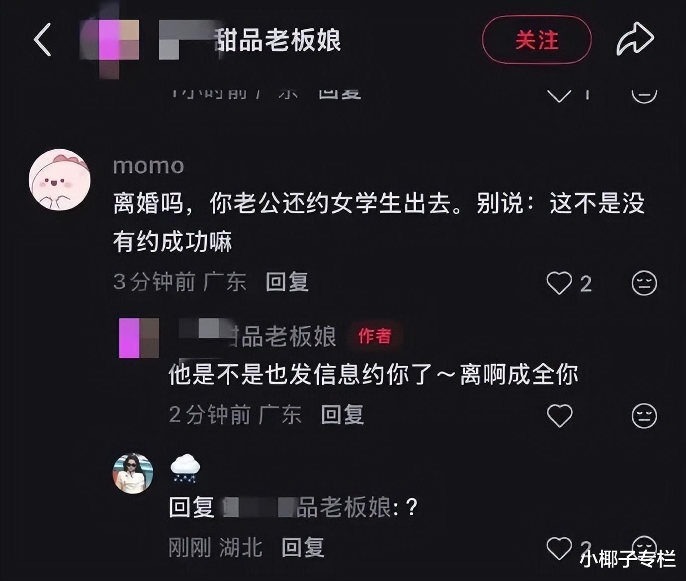 网友们同情他老婆,把这件事告诉老板娘,却被老板娘讽刺:“他是不是也发信息约你了?离啊成全你。”