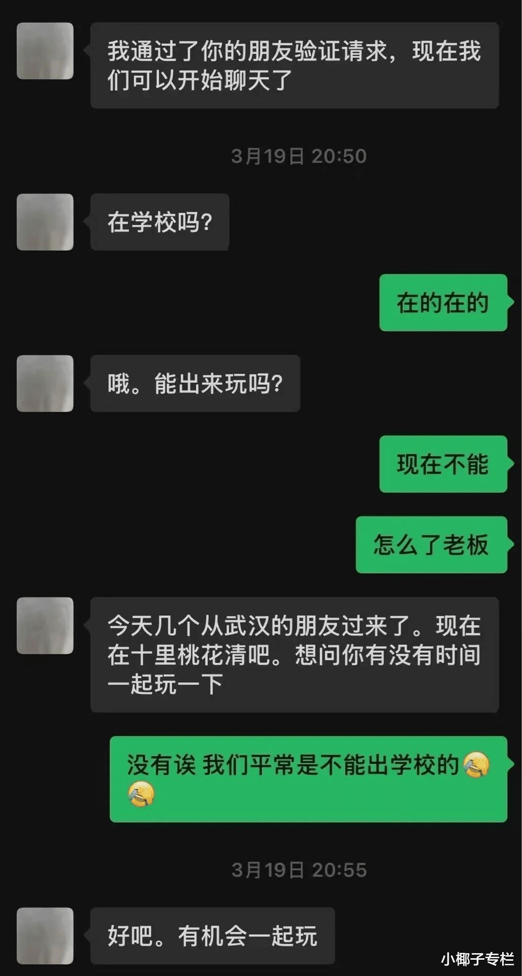 比如有女学生晒出一张聊天记录截图,老板私聊她,问她能不能出来玩,邀请她去酒吧。