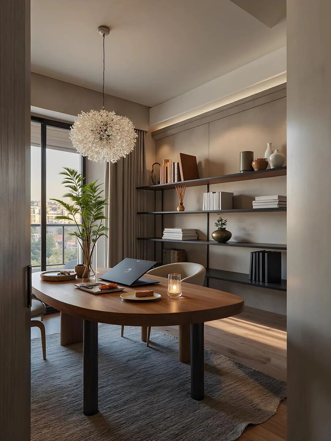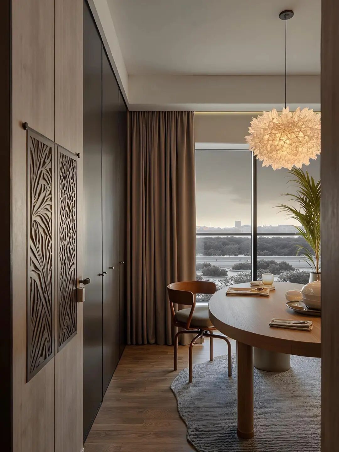 客厅开放式连通餐厅,书房借窗引入城市景,卧室用木饰面板划分层次… 空间流动又私密,住起来太舒服!