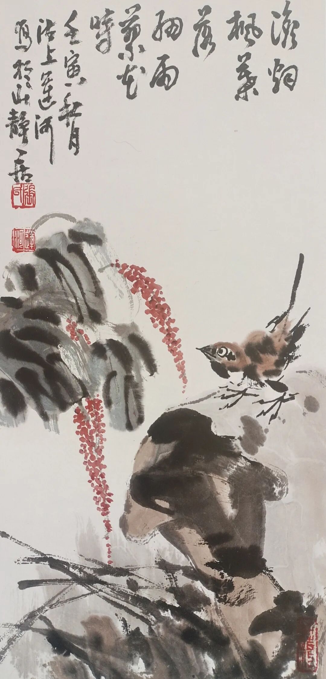 在当代写意花鸟创作中,张运河以山水入花鸟的创作路径,让其作品在传统脉络中走出了个人特色,山水盛名之下,其花鸟画的笔墨功底、意境营造与艺术巧思,皆彰显出一位成熟画家的艺术积淀,也为传统写意花鸟的当代发展,提供了山水与花鸟技法交融的有益探索。