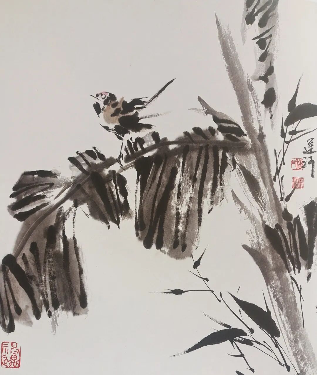 在构图布局上,山水画家的空间把控力成为其花鸟画的独特优势。他以传统花鸟折枝式构图为基底,融入“计白当黑”的中国美学精髓,留白恰到好处,画面疏密有致、虚实相生,即便小幅花鸟,也因山水的空间视野而具开阔格局,打破了传统花鸟小情小景的局限,让简约的画面藏着悠远的意境,小景见大气,尽显笔墨的张力与构图的巧思。