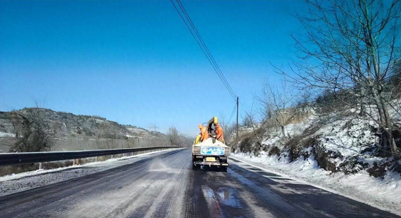 夜幕降临,气温骤降至零下,路面积雪迅速冻结成冰,桥梁、急弯、背阴路段成为除雪保畅的重中之重。在G307线、G209线、S340线、S218线等重点路段,除雪车、融雪剂撒布车的轰鸣声打破了夜的宁静,橘红色的身影在灯光下忙碌不停。针对山区路段坡陡弯急的特点,作业人员采取“机械开路、人工跟进、融雪剂覆盖”的组合战术,反复巡查处置暗冰隐患,确保每一段路面都安全可控。