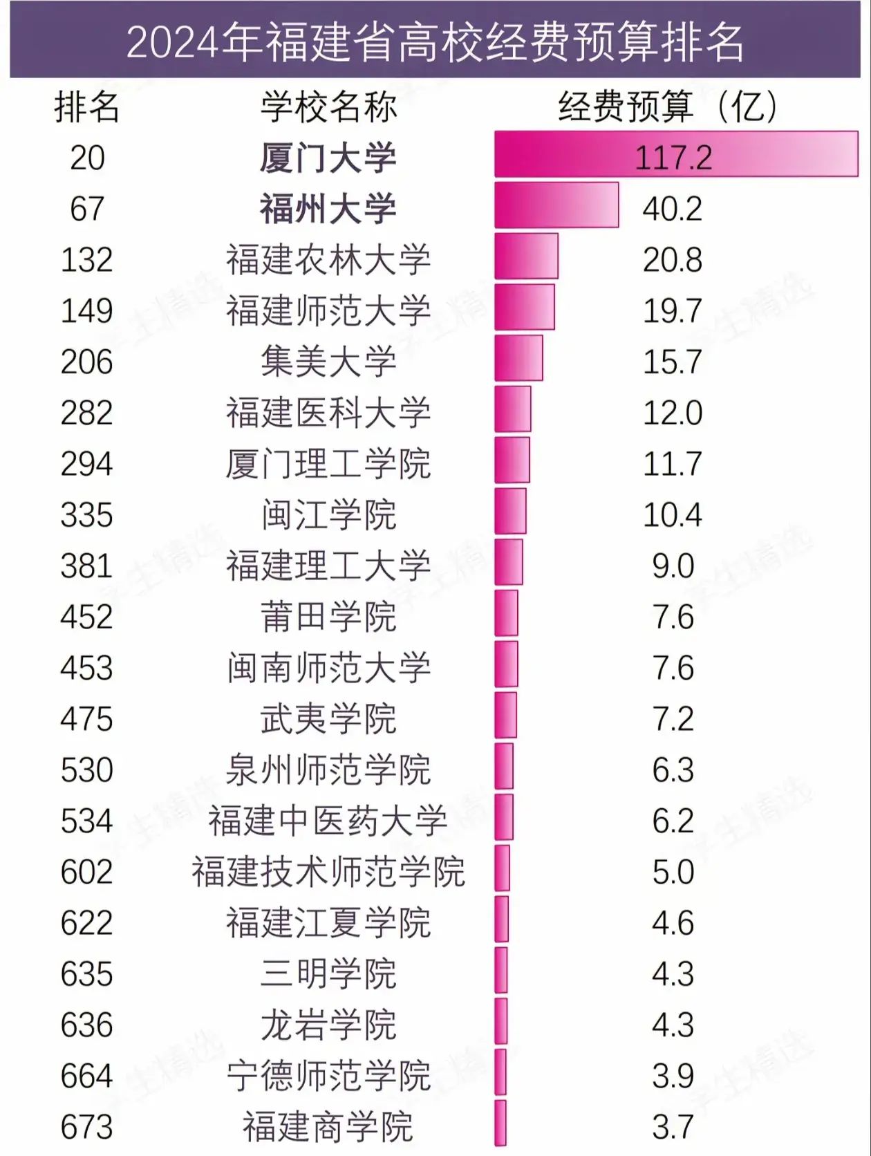 从福建省本省的经费预算排名和分布来看,厦门的一些大学和学院受到的支持力度甚至比省会福州还高,而福建理工大学很有可能也是吃了这个亏。