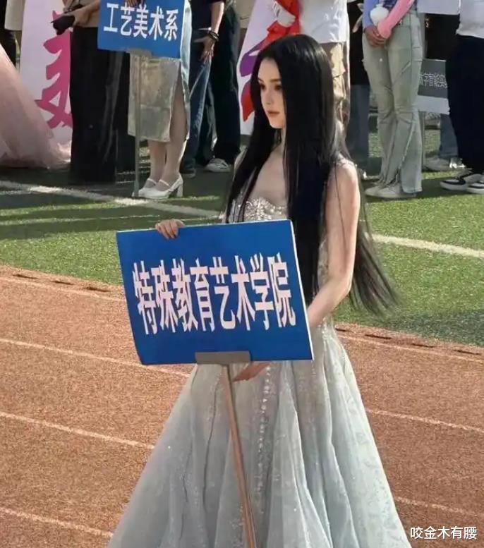 近日恰逢西安美院一年一度的学生运动会,开幕仪式上,一位身穿长裙礼服,长发披肩的女孩吸引了所有观众的目光,镜头下的她就像从童话故事中走出来的精灵公主,五官精致到让人窒息,美得不可方物。