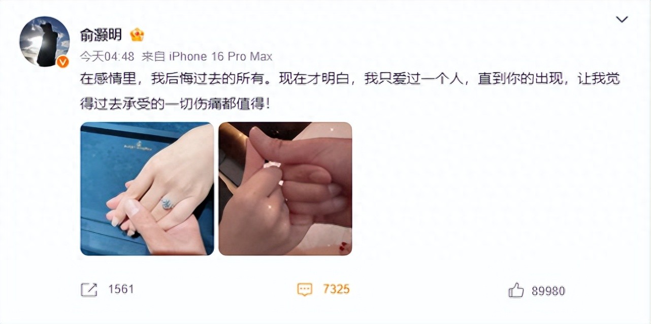 今天凌晨四点,演员俞灏明单方面官宣了与王晓晨的喜讯,但是女方并没有回应,而且微博也没有@王晓晨, 让粉丝很困惑,这是半夜突发奇想发的,没和女友商量的?
