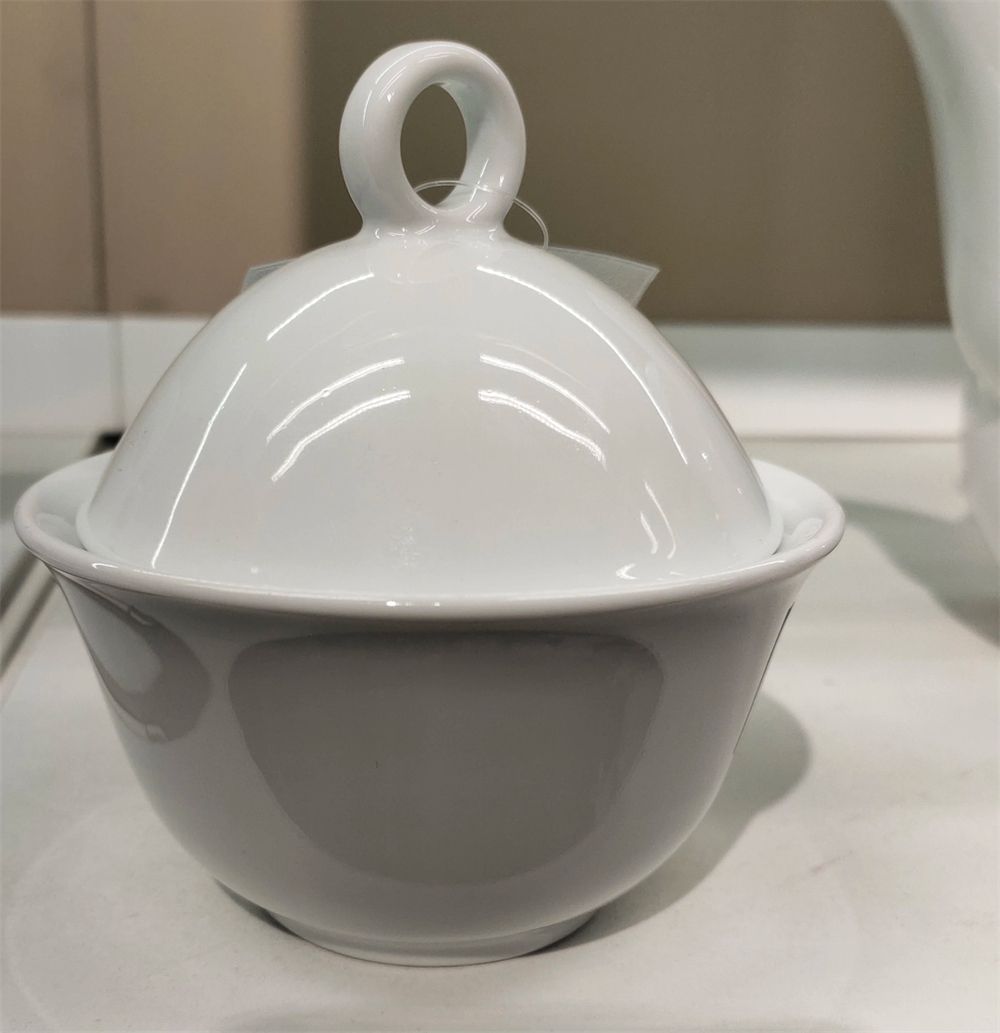 标准叫法是小糖碗,是喝咖啡时往里加白砂糖的一个桌面盛具,盖子上的小豁口,是用来放勺子的,第一眼确实看着有些懵。