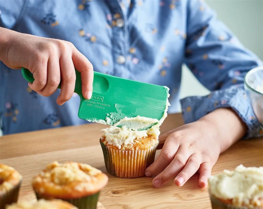 看似是个玩具的绿色迷你小菜刀,边角很钝又是塑料的,但其实它是个给蛋糕甜品抹奶油糖霜以及果酱的小刮刀,小小一个用起来很顺手又不会弄坏烘焙品的造型。