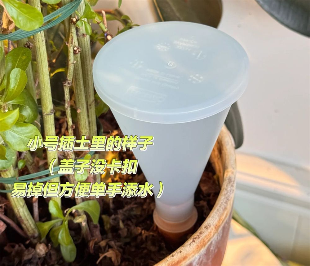 也是店员降解后才明白,这东西就是个懒人养花浇水器,把尖头插在土里,再灌满水,水就会慢慢渗入泥土里,半个月浇一次花都没问题。