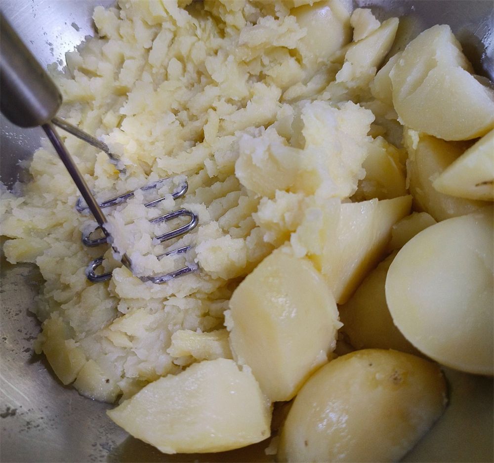 但其实,它是个功能比较单一的厨具,主要用途就是来捣土豆泥,之前我家做东北大饭包,也多亏了它捣土豆泥,比用勺子筷子之类的厨具效率可高多了。