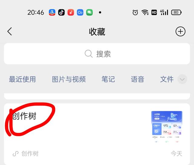 但很多人会问:“我的收藏打开后并没有看到‘创作树’,这是怎么回事?”其实很简单,只需打开微信,点击上方的搜索框,输入“创作树”,搜索成功后就能看到它的小程序。(如上图所示)