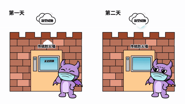 传统防火墙本地存储能力有限,能存放千万级规则已是极限,依靠本地规则库或普通云查杀,难以快速识别和拦截各种新型威胁。