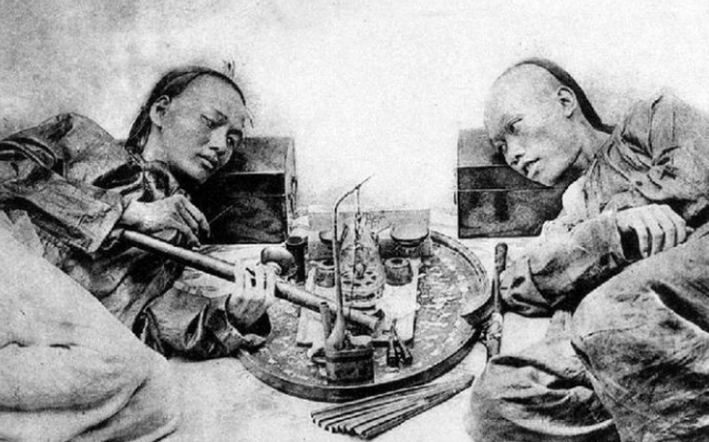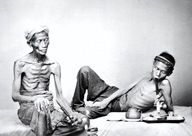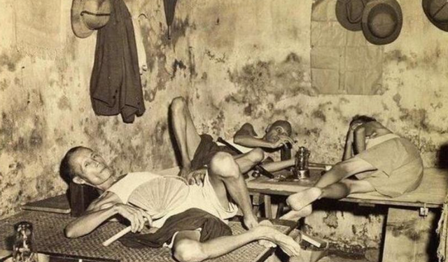 全民吸毒的悲剧那时,烟馆里总是有着一股令人窒息的烟气滚滚而出,屋内光线昏暗,四处是散乱的褥垫与褪色的帘幔。