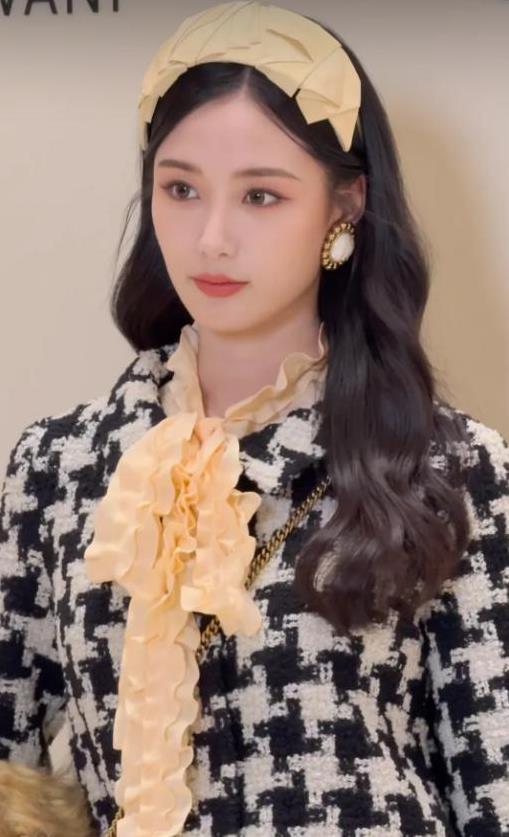 活动当天,27岁徐艺洋一身黑白格子套装裙,搭配浅黄色头箍和大耳环,整个妆造是挺好看的,就是让人记不住她的长相。