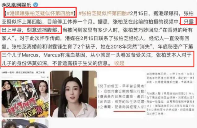 因此,港媒爆料张柏芝疑似怀四胎,还指出张柏芝在之前拍摄的视频中,很明显看到她只露出上半身,刻意遮挡腹部。