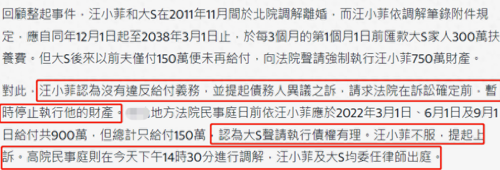 前几日,大S发表声明称对汪小菲的父母表示尊重,并表示和汪小菲缘分已尽,如今好聚好散不要再生事端,也希望小菲不要针对她,孩子共同抚养,一切事情还是和平解决。