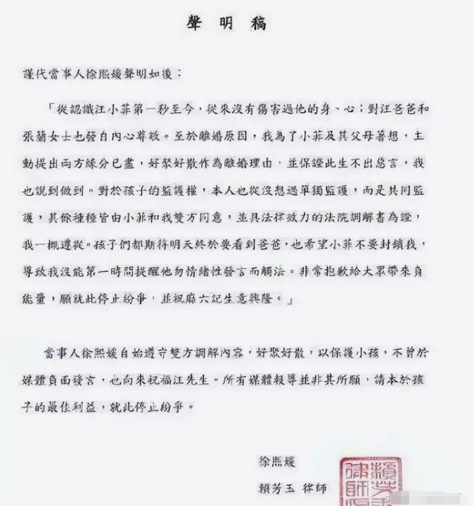 于是在大S提出离婚,并且将协议拟好之后,汪小菲没有任何异议便签上了字,可以看出当初的离婚协议对于汪小菲来说是非常苛刻的,但汪小菲觉得与大S反正还会复婚,所以没有提出不同意见。