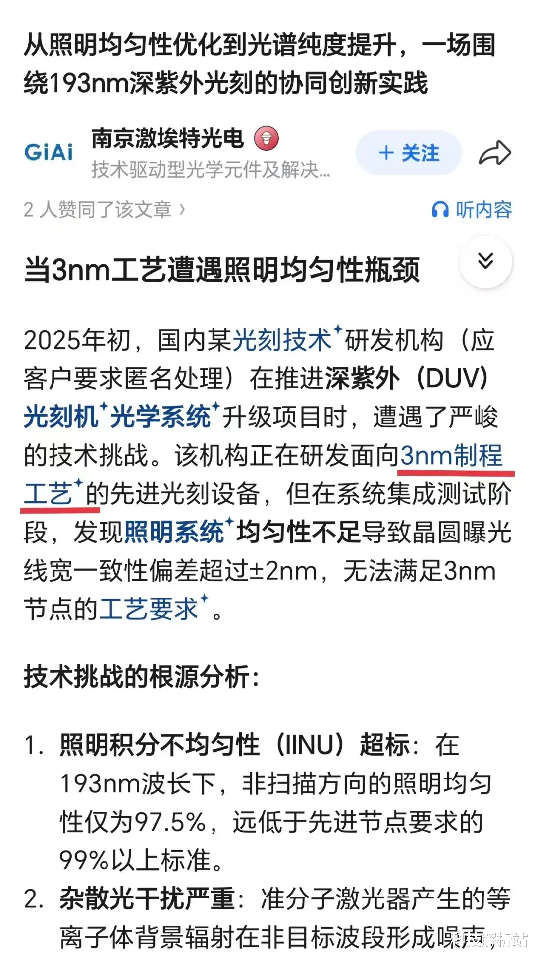2026年2月27日,南京激埃特光电发布一篇名为《从照明均匀性优化到光谱纯度提升,一场围绕193nm深紫外光刻的协同创新实践》的文章,从侧面证实国产DUVi光刻机技术水准极高!