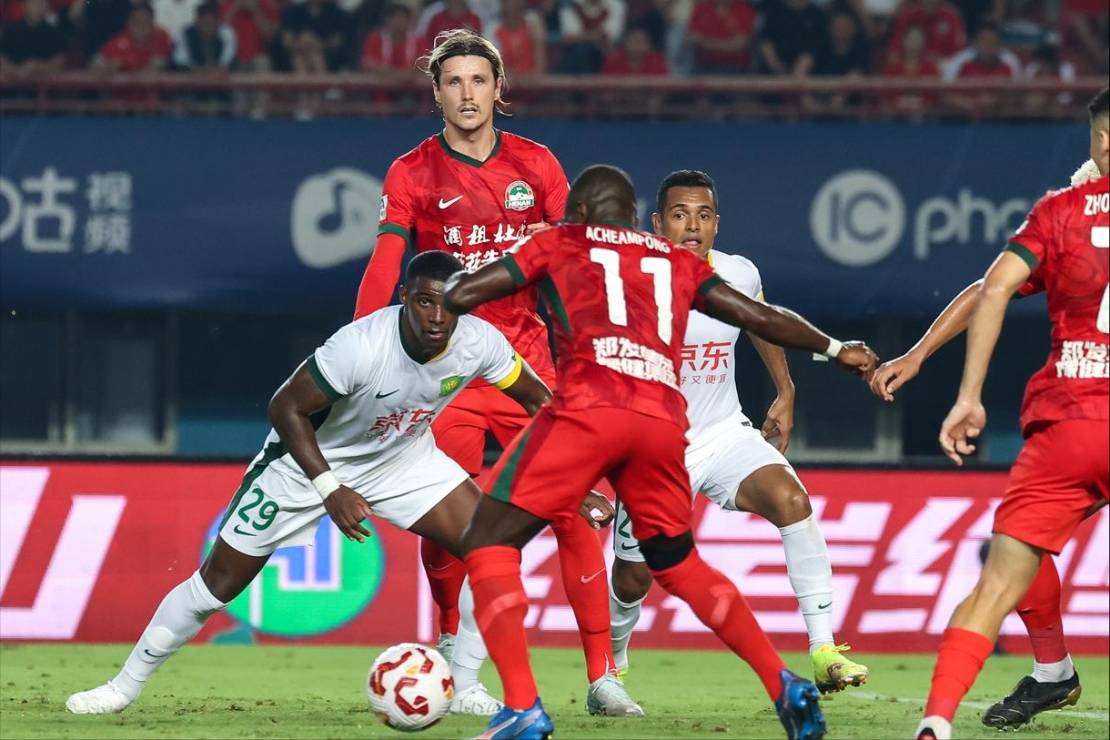 第16分钟,国安在河南队禁区制造混乱,法比奥机敏劲射,为球队首开纪录。落后的河南队全力反扑,多次获得前场任意球,不过威胁有限。反观国安,补时第7分钟,法比奥禁区内转身射门,造成马亚手球,经过VAR提示,国安获得点球,又是法比奥,主罚命中,国安2球领先结束上半场。