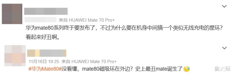 而这次,华为Mate 80系列不仅改了名,还改了外观设计语言,尤其是手机后盖那一块用于磁吸的圆环,再次招来了不少“骂声”。。。