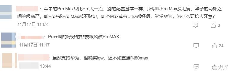 要鲁Sir说,这次Mate80 Pro Max改名争议的根源在于:首先小米17改名的余温还在,这个节骨眼再上Pro Max,吐槽声多半会来得更猛;其次Pro+这个后缀,已经被华为自己“养成形”了,突然改名一时半会用户无法接受。