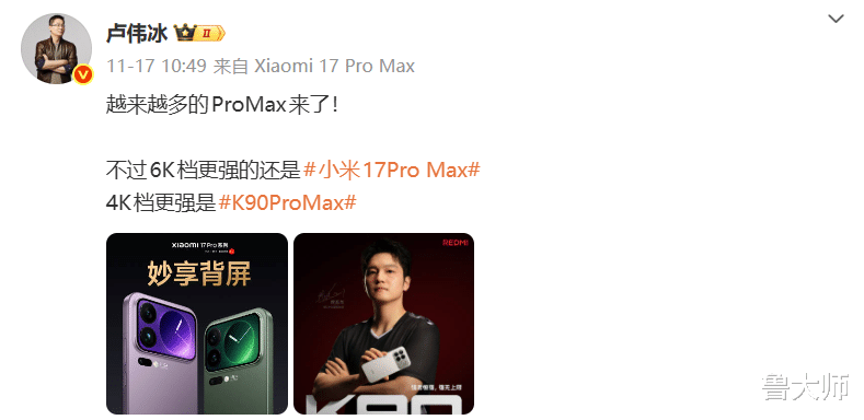 当然最强战力还得是手机高管,卢伟冰一句“越来越多的Pro Max来了”把评论区节奏带的飞起不说,还顺便宣传了波自家Pro Max新机,有点看热闹不嫌事大的味道。