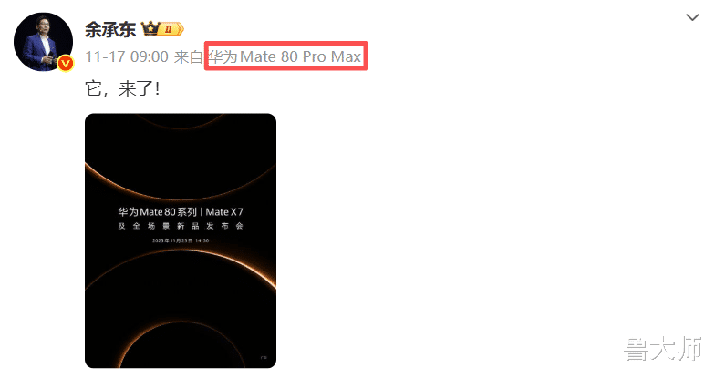 而当华为Mate80系列官宣发布时,余承东官博小尾巴露出新机华为Mate80 Pro Max,相当于宣布曾经的“Pro+”正式退场,取而代之的是“Pro Max”,结果华为又被网友“集火输出”了一波。