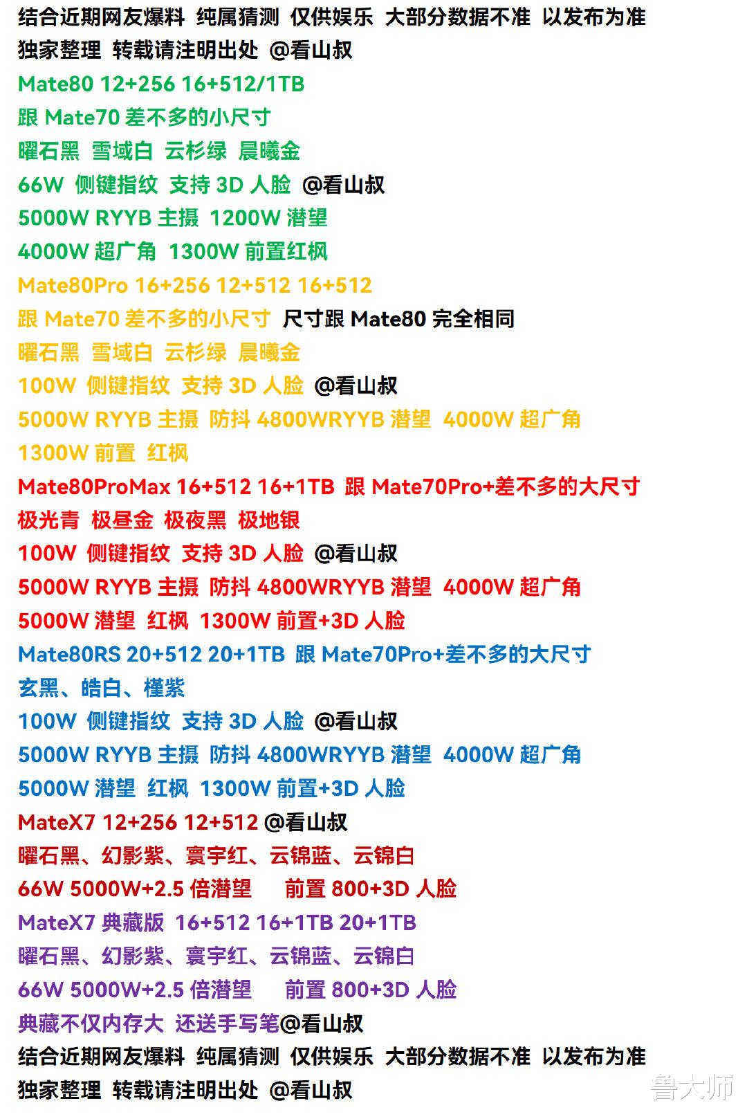 说到产品力,根据目前网上的爆料,相比过去Pro和Pro+的差异,往往只集中在镜头模组的小幅升级,这次Mate80 Pro Max升级幅度的确要大一点。
