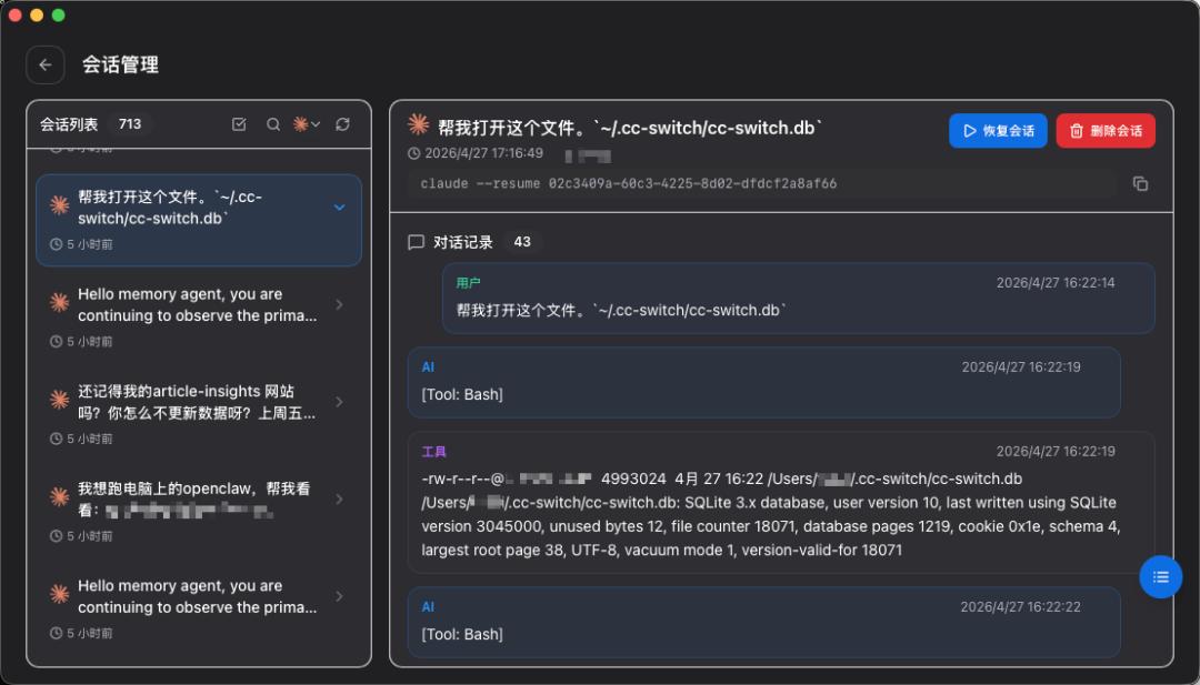 除了上面说的这些,CC Switch还有挺多其他功能可以细挖,比如会话管理。