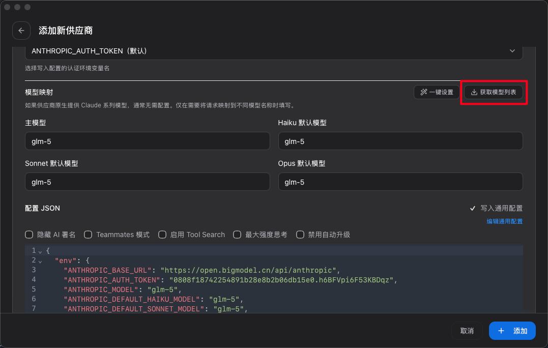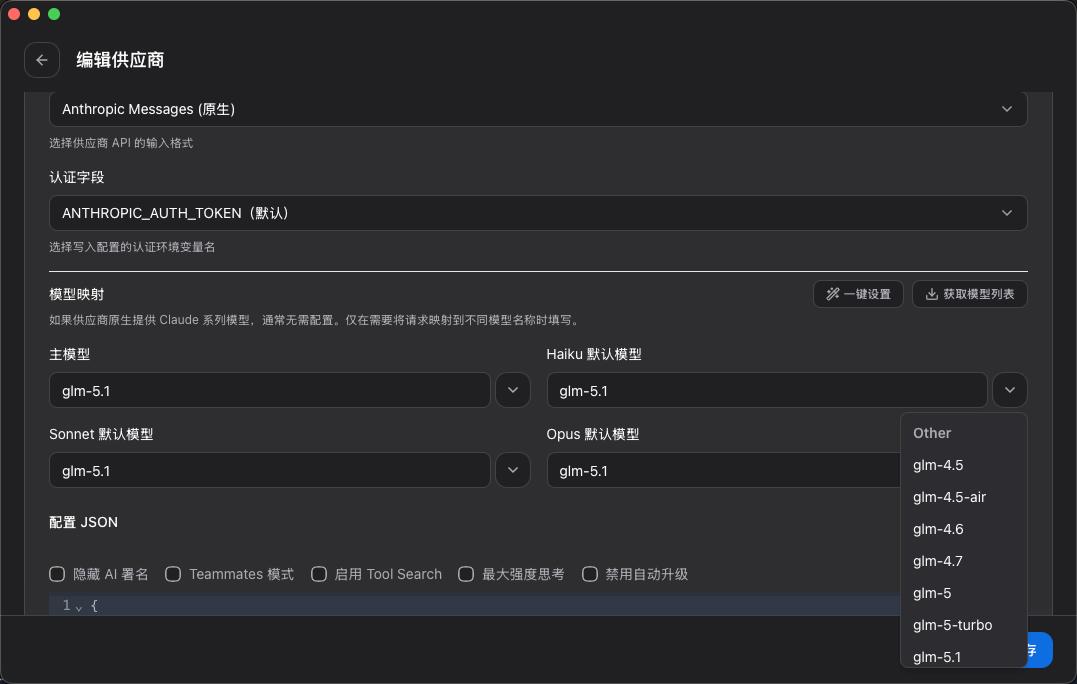 API Key填进去之后,可以下拉看一眼CC Switch自动给你配的模型版本,不喜欢可以改。