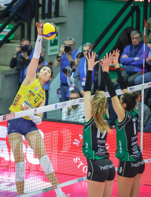 面对联赛劲旅诺瓦拉,朱婷全场64次进攻命中35球,成功率高达55%,同时贡献3次拦网得分。更令人惊叹的是,她在第五局关键分时连续7次暴力扣杀得手,直接锁定胜局。意大利媒体《米兰体育报》惊叹:"她就像一台精密运转的得分机器,从四号位强攻到后排进攻,每个技术环节都无懈可击。"这场比赛也让她超越埃格努保持的36分纪录,成为意甲近十年单场得分最高的非接应选手。
