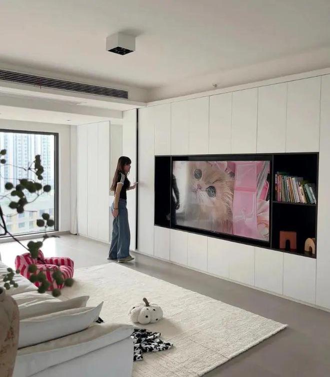 随着电视满墙柜的普及,已经有越来越多家庭用其取代背景墙了。毕竟背景墙终究有看腻的一天,而柜子却可以扩充收纳力。
