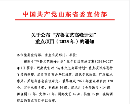 喜讯!2025年“齐鲁文艺高峰计划”重点项目公布名单,其中,《海岛金山传奇》成功入选重点项目纪录片(含动画片)。