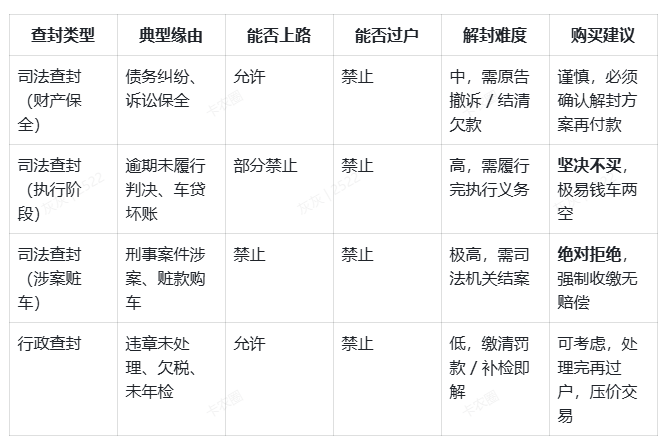 隐患:解封流程复杂,需结清债务、法院撤销查封;若为涉案车辆,买家可能被牵连,车被收走且难追回车款。