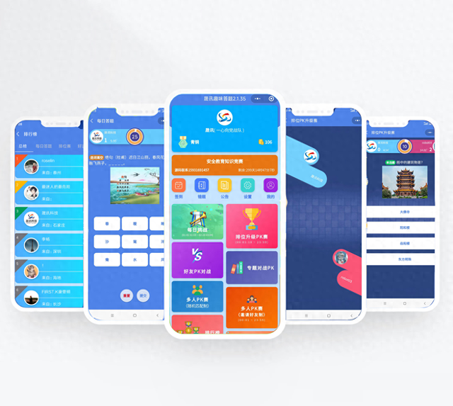 排位PK:用户选择参赛场次报名,系统根据用户的段位和历史记录匹配对手进行1V1 PK答题。战胜对手可加一星,当前段位星满后自动开启下一段位,输掉排位会掉星星。可限制每日排位PK的次数,让用户更珍惜每次答题机会,努力提升自己的段位。