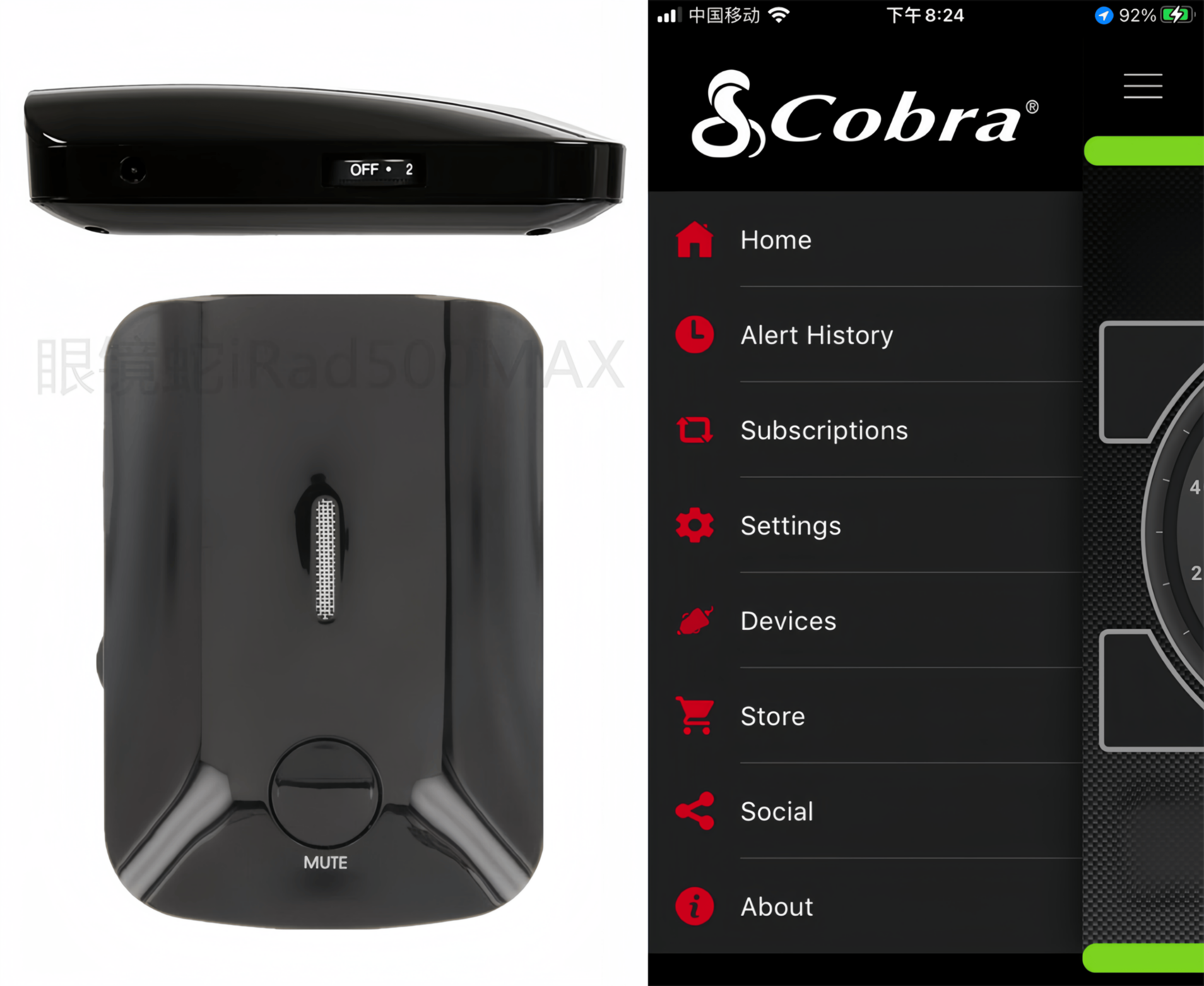 免费的 眼镜蛇官方国际APP(cobra iradar) 应用程序 - 使用 Cobra眼镜蛇 应用程序将您的驾驶提升到一个新的水平!无缝连接到您的 Cobra眼镜蛇irad500MAX雷达/激光探测器,并轻松自定义和微调您的探测器设置,自动免费固件更新。您将直接在手机屏幕上收到实时警报。通过即时通知领先于潜在威胁,并在手机屏幕上轻松控制静音和静音内存等警报事件。