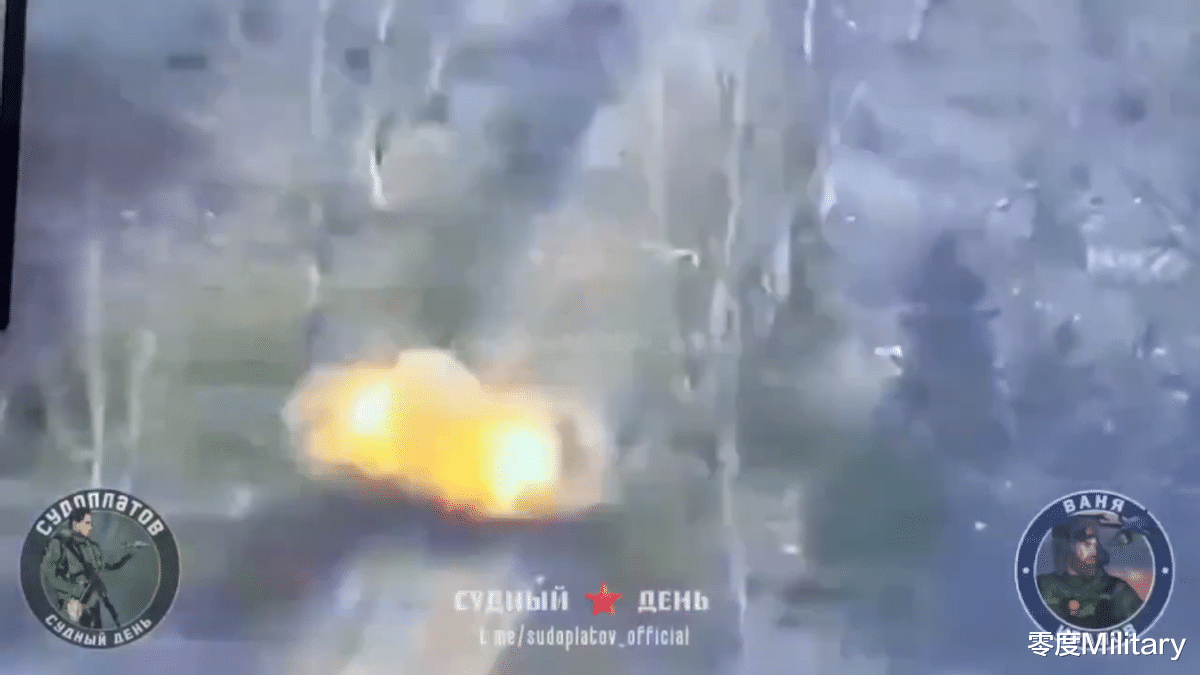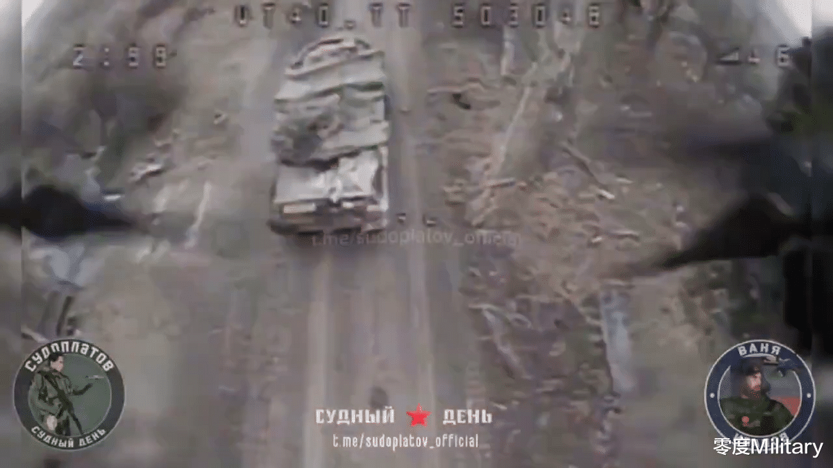 随后,这辆豹1A5主战坦克离开了最初的位置,开始沿着一条道路行驶。不知为何突然停了下来,并再次遭到3架FPV无人机的攻击,显然是击中了发动机和变速箱上方的车体部分。即便如此,豹1A5仍未被摧毁,继续向前行驶,之后又有2架FPV无人机击中同一位置,导致豹1A5停了下来,可能还引起了火灾。
