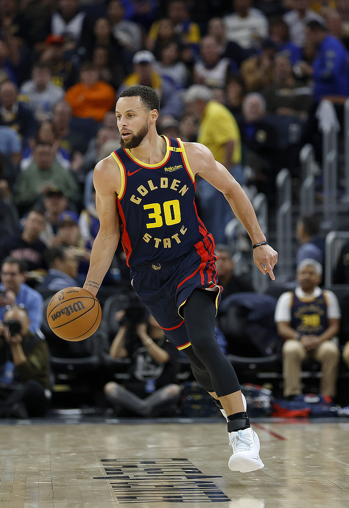 斯蒂芬·库里(Stephen Curry)以其历史级的三分投射能力,彻底改变了篮球运动对得分效率的认知。根据NBA官方数据,库里职业生涯三分命中率超过42.7%(截至2023-24赛季),并保持着单赛季402记三分的历史纪录(2015-16赛季)。与传统射手依赖定点投篮不同,库里通过运球后急停三分、超远距离出手(通常超过9米)以及无球跑动接球投篮的结合,将三分威胁扩展到全场范围。他开发了"零空间投篮"(即在极短出手时间内无视防守干扰)的技术,迫使对手防守范围外扩至中线附近,这一突破直接动摇了"离篮筐越近得分越高效"的传统篮球理念。