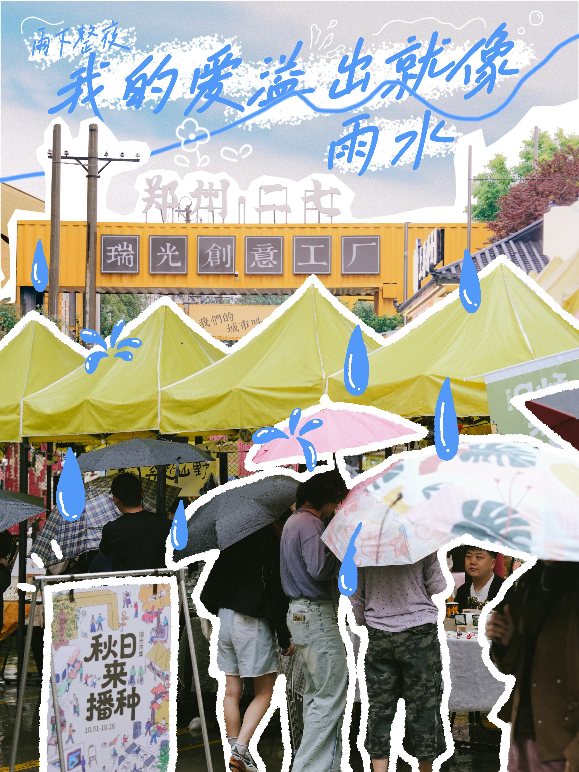 像为假期奏响天然的开幕鼓点。雨水从篷布边缘滑落,形成一道天然隔离带,反而围合出一个个***沉浸式小剧场假期确定了,雨也确定了——但我们更确定了:让迎接假期如约而至。即使大雨会影响门店、摊位的呈现,我们依然用可控内容撑起这个假期:“有一年大雨,主唱唱到嘴麻了——因为漏电了”这份带点狼狈的回忆,成了面对天气的默契,不跑空。我们清楚自己的体量不大,但更清楚每一份奔赴的珍贵。“雨是天空的播种机,我们是接住希望的土壤”你好,在雨中,正在营业。瑞光市集「秋日来播种」60+文创摊位 / 30+跳蚤市场 /9场小展 / 1直驻唱 / 1起看电影🗓️ 10.01-10.26 / 15:00-21:00📍 郑州瑞光创意工厂