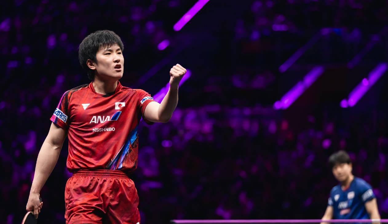 张本智和展现出强大的进攻火力,如同猛虎下山,势不可挡。