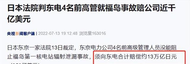 到后来日本东京的法院裁定,东京电力公司4名前高级管理人员没能阻止福岛第一核电站辐射泄漏事故,须向东电合计赔偿约950亿美元,但事故已经发生了,再多钱也挽回不了。
