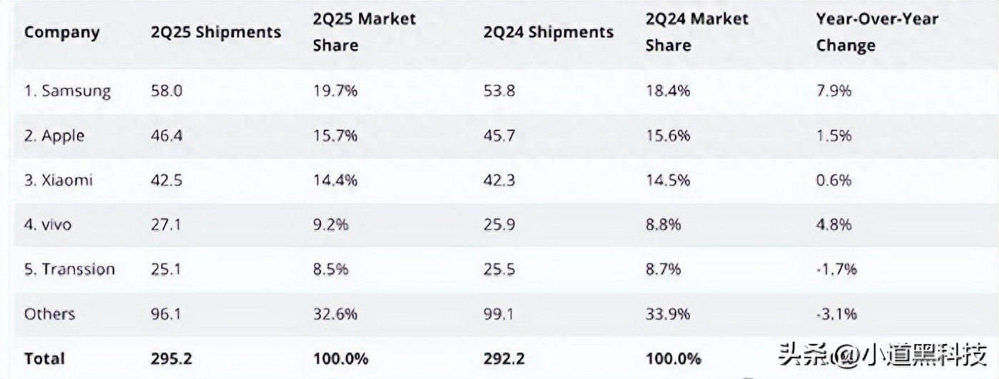 而即将在9月底发布的小米16系列气定神闲,丝毫不为所动,或许是因为小米在2025年第二季度全球市场份额稳稳地占据了14.4%到15%之间,出货量超过四千万台,所以底气十足吧。