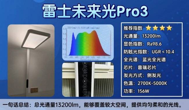 大路灯护眼灯第十名:雷士未来光Pro3;支持在2700K–5000K色温区间内自由调节。