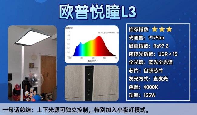 大路灯护眼灯第七名:欧普悦瞳L3;上下光源可独立控制,特别加入小夜灯模式。