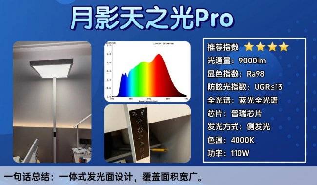 大路灯护眼灯第九名:月影Pro;采用一体式发光面,覆盖面积宽广。